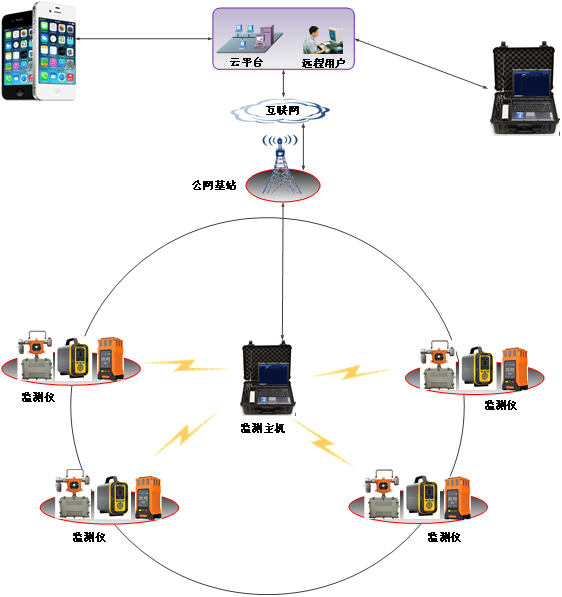 1)現場區域監測儀發出聲光報警時、將報警信息發送給周圍其它設備,實現報警互聯。