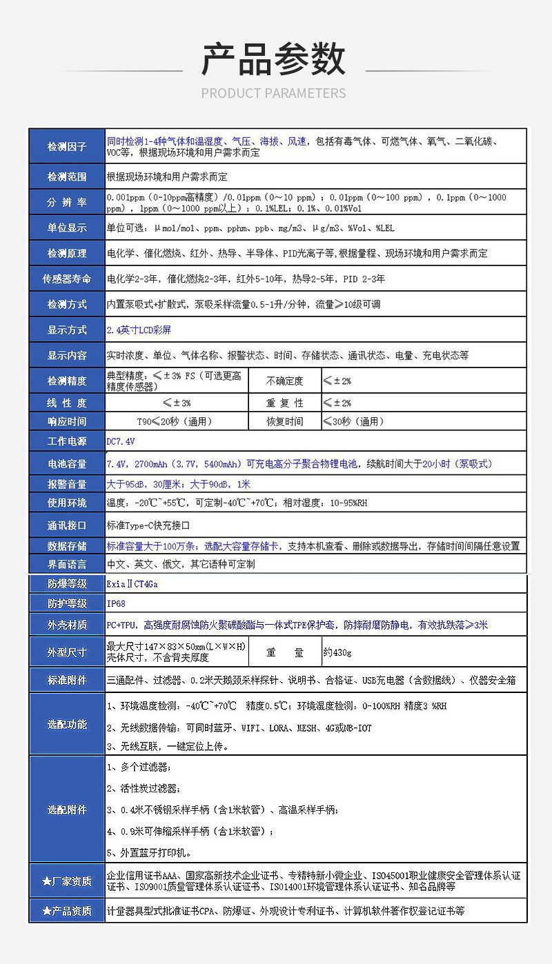 檢測因子 | 同時檢測1-4種氣體和溫濕度、氣壓、海拔、風速,包括有毒氣體、可燃氣體、氧氣、二氧化碳、VOC等,根據現場環境和用戶需求而定 |