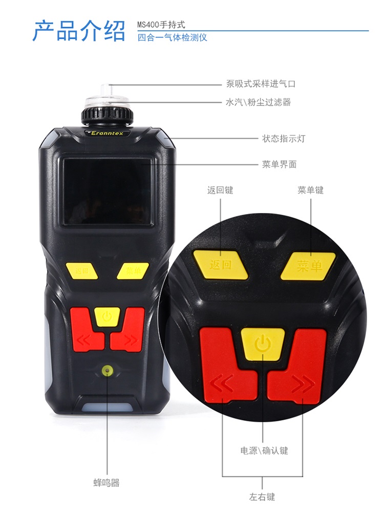泵吸式四合一氣體檢測儀 MS400總述: (1-4種氣體隨意組合)