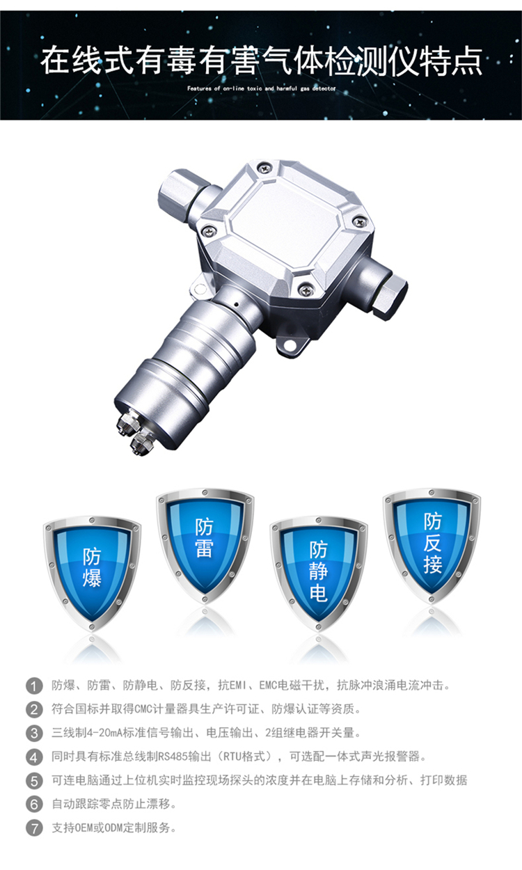 檢測方式:擴(kuò)散式測量;可選管道式、流通式、泵吸式測量