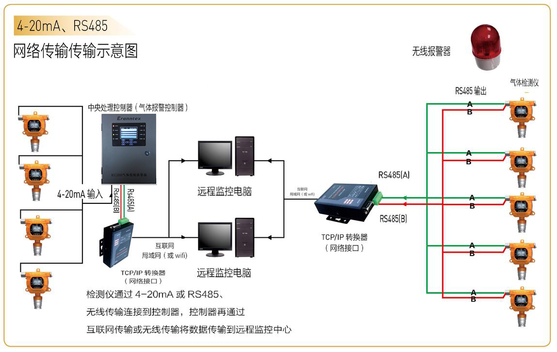 5、氣體檢測儀/檢測報警儀網絡傳輸示意圖(4-20MA/RS485信號)